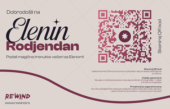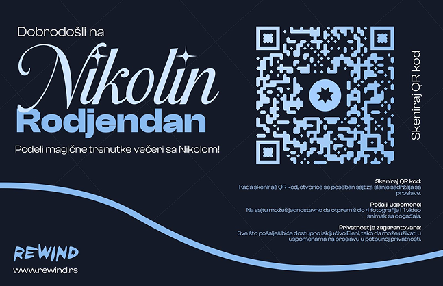 REWIND je softver namenjen za događaje, koji omogućava gostima da skeniraju QR kod koji je postavljen na stolu.