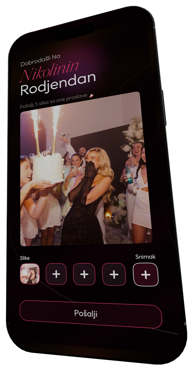Pre slanja, gosti unose svoje ime, što doprinosi personalizovanom iskustvu i organizaciji uspomena.